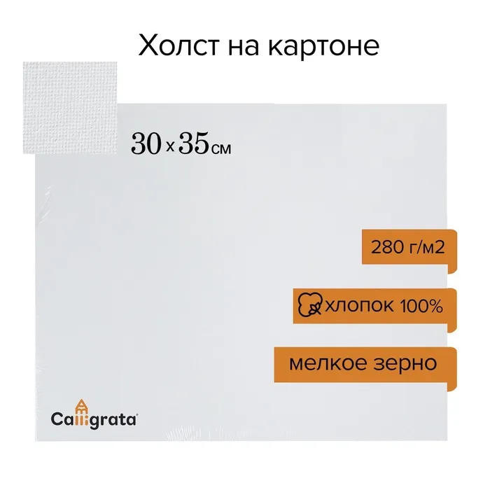 Холст на картоне Calligrata, хлопок 100%, 30×35 см, 3 мм, акриловый грунт, мелкое зерно, 280 г/м² — Характеристики
