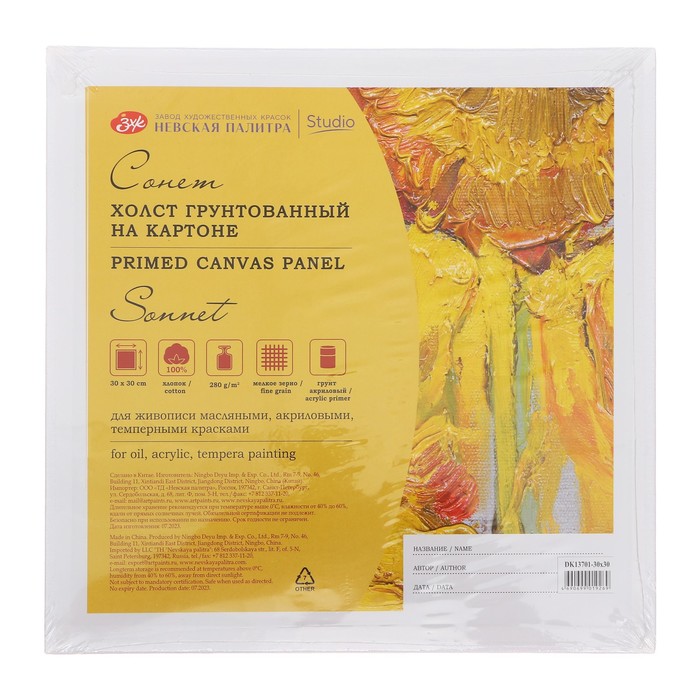 Холст на картоне «ЗХК. Сонет», хлопок 100%, 30×30 см, толщина 3 мм, акриловый грунт, мелкозернистый, DK13701-30×30 — Характеристики