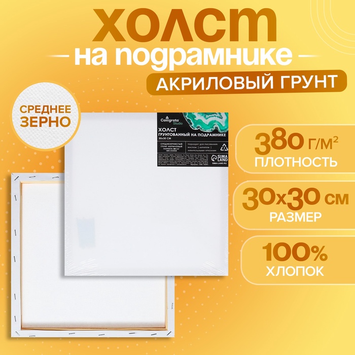Идеально натянутый грунтованный холст из 100% хлопка дает возможность безотлагательно приступить к созданию шедевра.