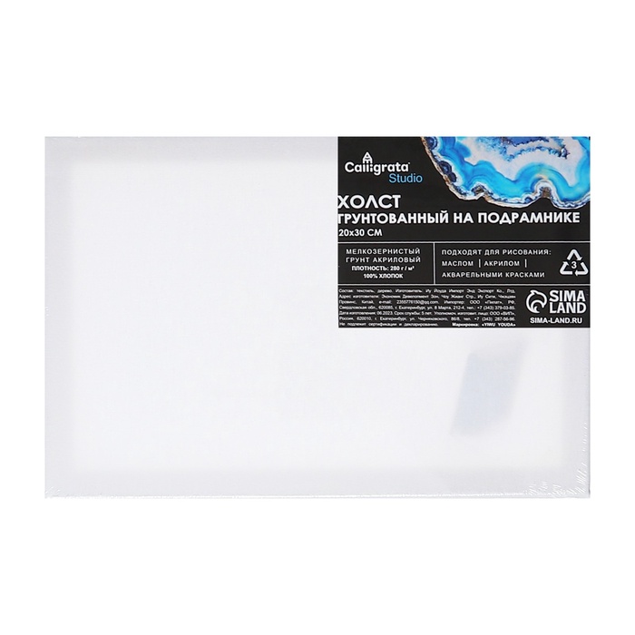 Холст на подрамнике Calligrata, хлопок 100%, 1.6×20×30 см, акриловый грунт, мелкозернистый 280 г/м² — Характеристики
