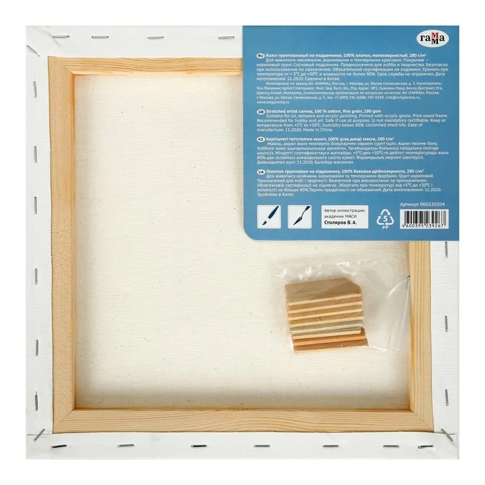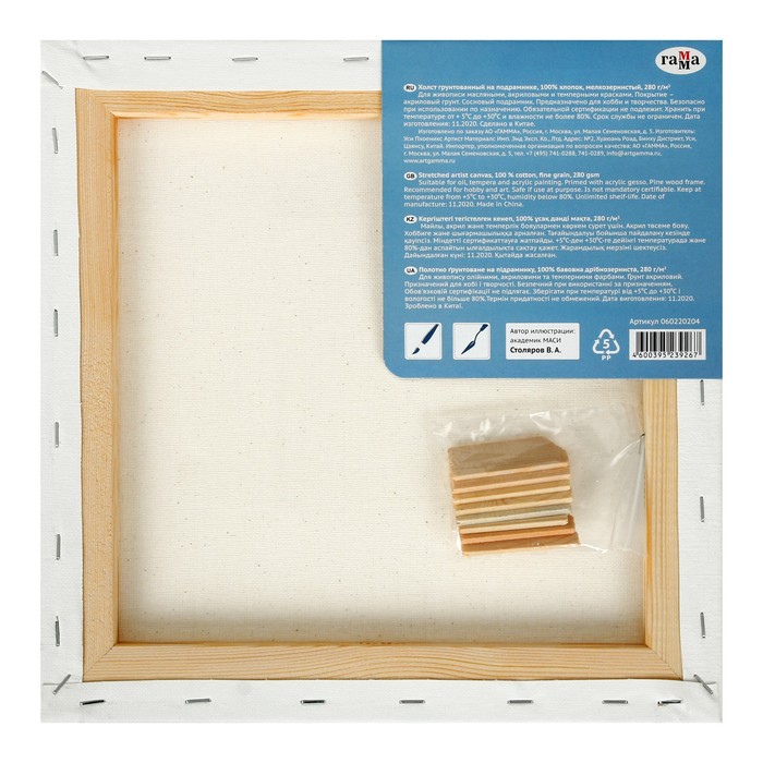 Холст на подрамнике «Гамма. Студия», хлопок 100%, 30×30×1.8 см, акриловый грунт, мелкозернистый, 280 г/м² — Характеристики
