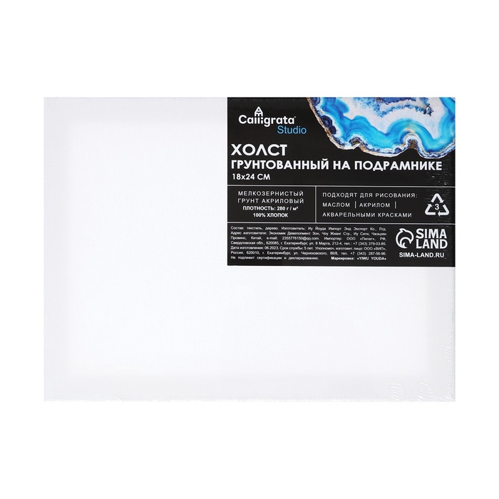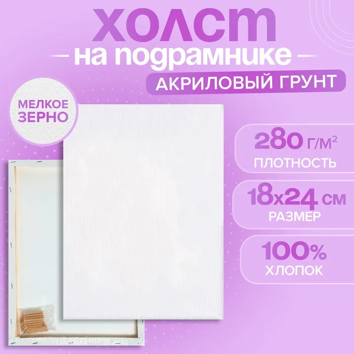 Холст на подрамнике, хлопок 100%, 1.6×18×24 см, акриловый грунт, мелкозернистый, 280 г/м² — Характеристики