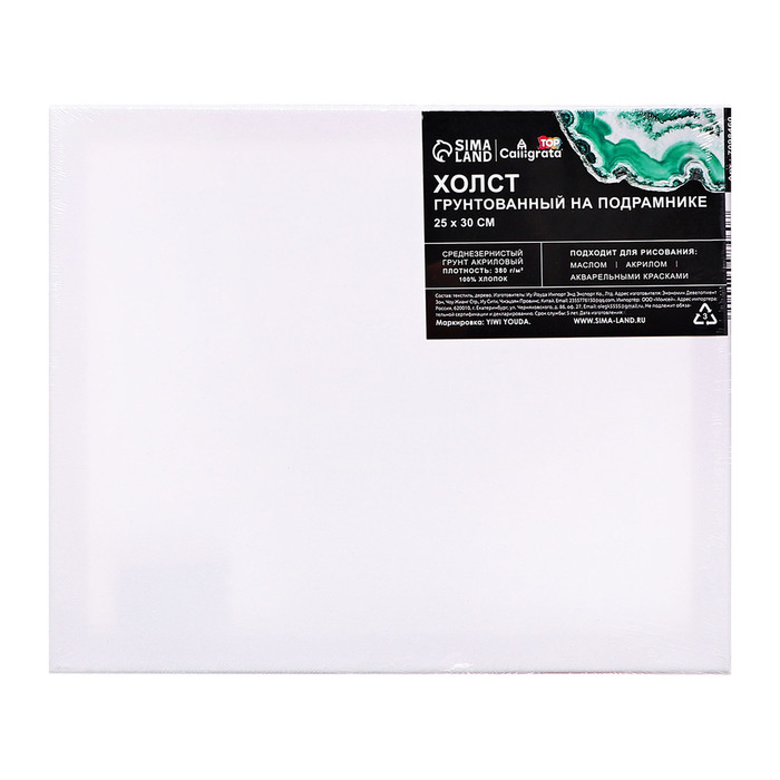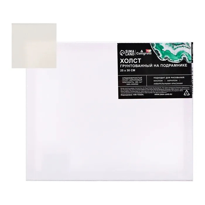 Холст на подрамнике, хлопок 100%, 1.6×25×30 см, акриловый грунт, среднезернистый, 380 г/м² — Характеристики
