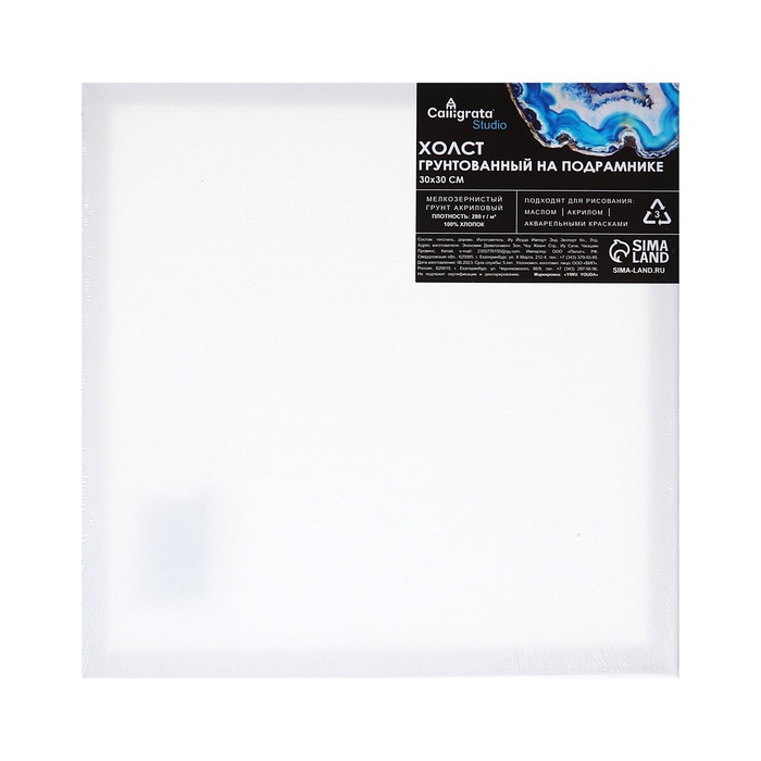 Холст на подрамнике, хлопок 100%, 1.6×30×30 см, акриловый грунт, мелкозернистый, 280 г/м² — Характеристики