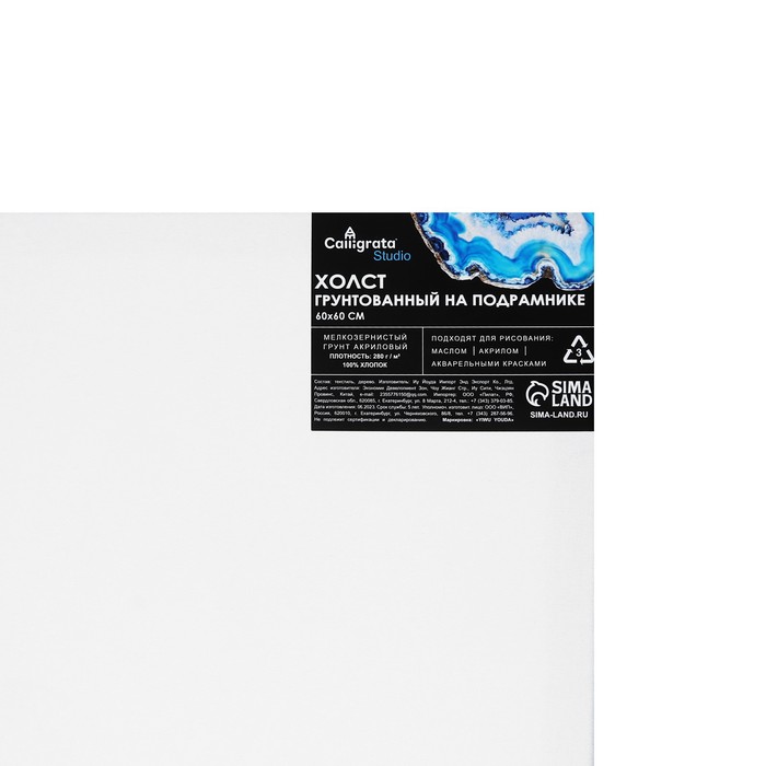 Холст на подрамнике, хлопок 100%, 1.6×60×60 см, акриловый грунт, мелкозернистый, 280 г/м² — Характеристики