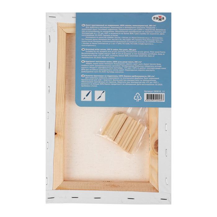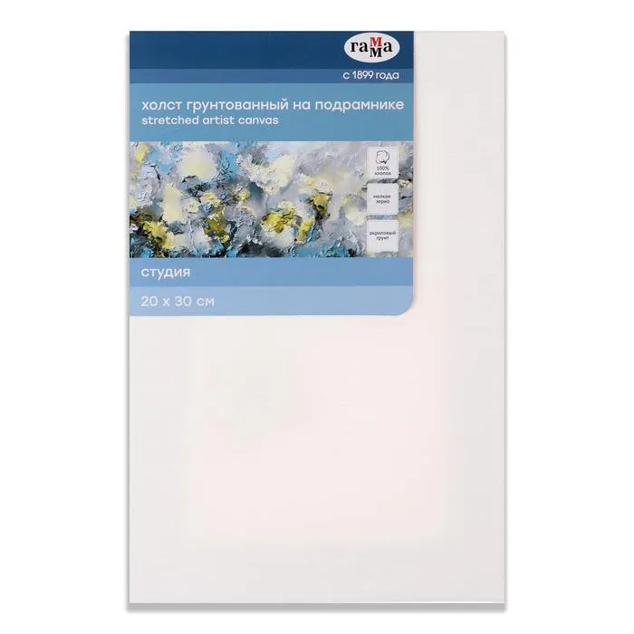 Холст на подрамнике, хлопок 100%, 20 х 30 х 1,8 см, акриловый грунт, мелкозернистый, 280 г/м2, "Студия" — Характеристики