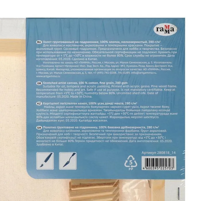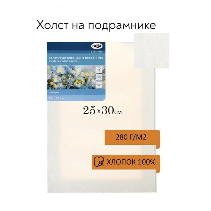 Холст на подрамнике, хлопок 100%, 25 х 30 х 1,8 см, акриловый грунт, мелкозернистый, 280 г/м2, "Студия" — Характеристики