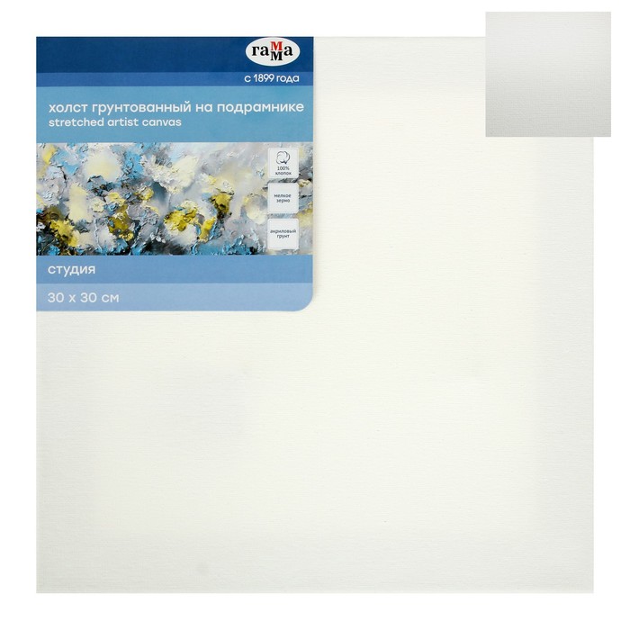 Холст на подрамнике, хлопок 100%, 35 х 45 х 1,8 см, акриловый грунт, мелкозернистый, 280 г/м2, "Студия" — Характеристики