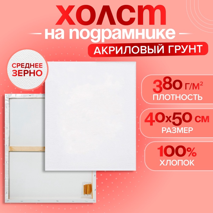 Холст на подрамнике, хлопок 100%, 40 х 50 х 1.8 см, акриловый грунт, мелкозернистый, 280 г/м² — Характеристики