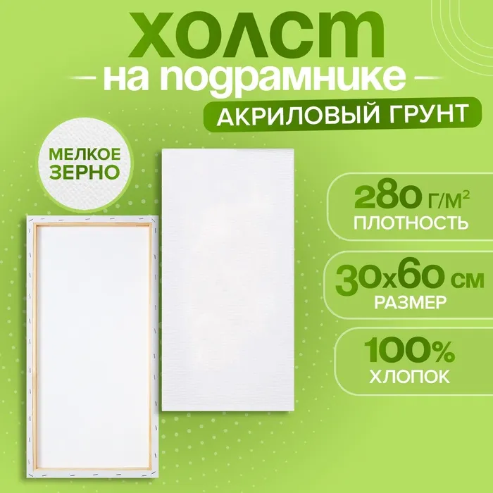 Холст на подрамнике хлопок 100% акрил грунт 1,6*30*60 см м/з 280г/м² — Характеристики