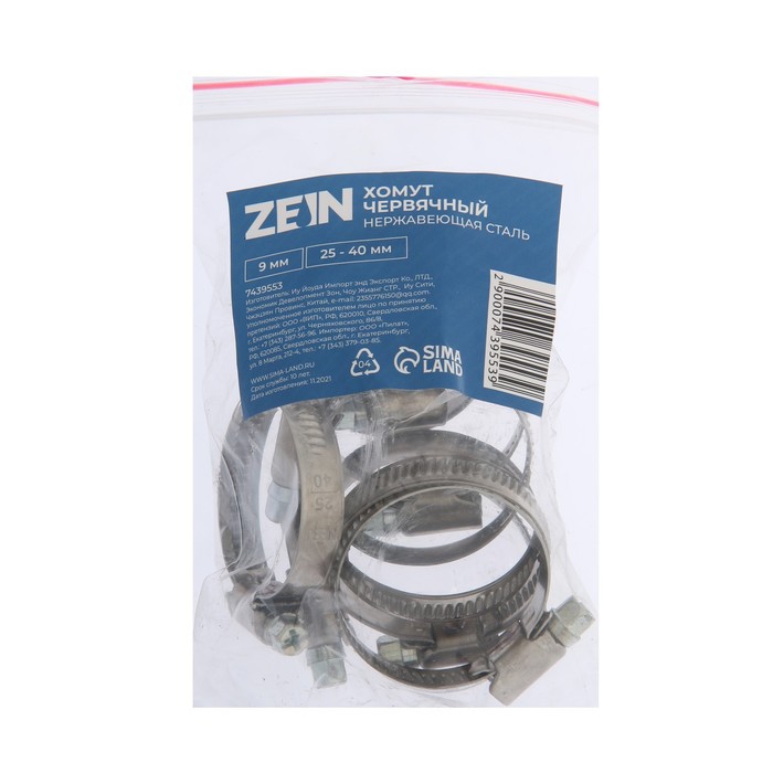 Хомут червячный ZEIN engr, диаметр 25-40 мм, ширина 9 мм, нержавеющая сталь — Характеристики
