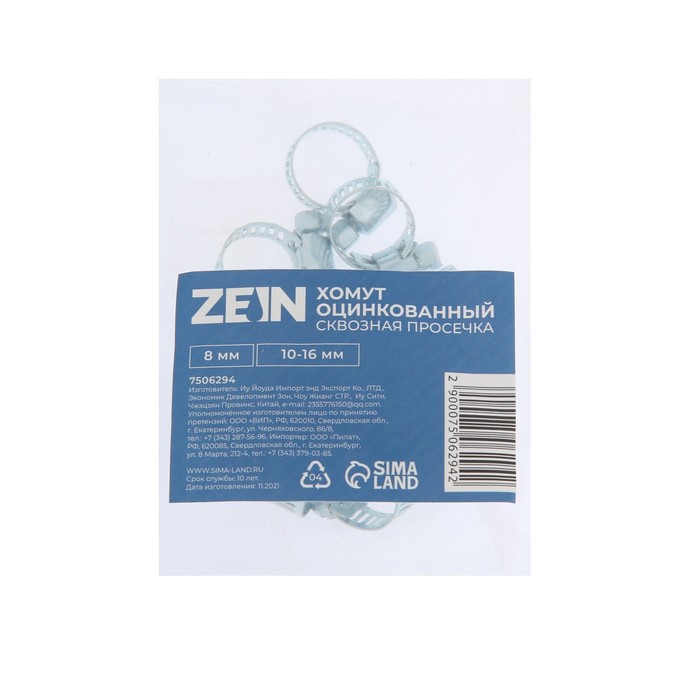 Хомут червячный ZEIN engr, сквозная просечка, диаметр 10-16 мм, ширина 8 мм, оцинкованный — Характеристики