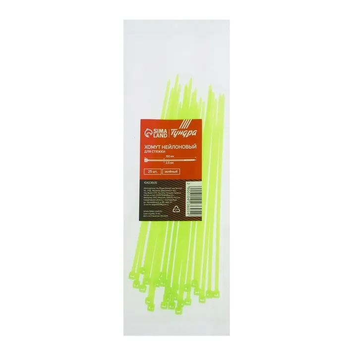 Хомут нейлоновый для стяжки, ТУНДРА, 2.5×150 мм, зеленый, 25 шт. — Характеристики