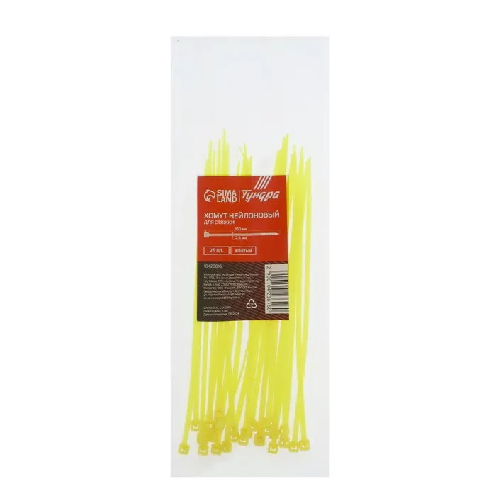 Хомут нейлоновый для стяжки, ТУНДРА, 2.5×150 мм, желтый, 25 шт. — Характеристики