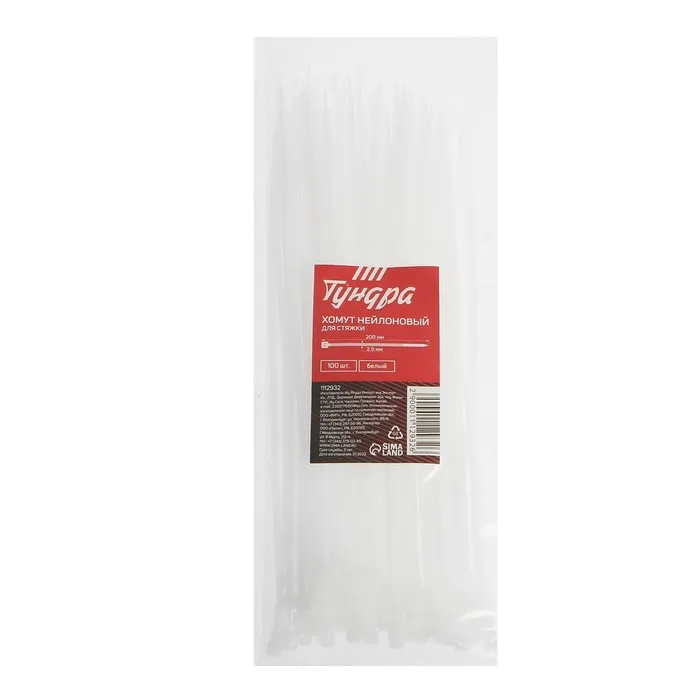 Хомут нейлоновый для стяжки, ТУНДРА, 2.5×200 мм, белый, 100 шт. — Характеристики