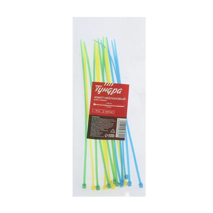Хомут нейлоновый для стяжки, ТУНДРА, 2.5×200 мм, цветной, 15 шт.