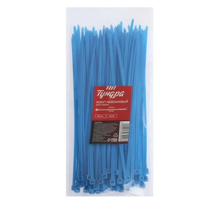 Хомут нейлоновый для стяжки, ТУНДРА, 3.6×200 мм, синий, 100 шт. — Характеристики