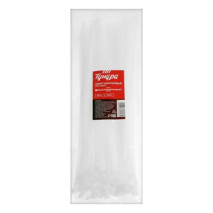 Хомут нейлоновый для стяжки, ТУНДРА, 3.6×150 мм, белый, 100 шт.