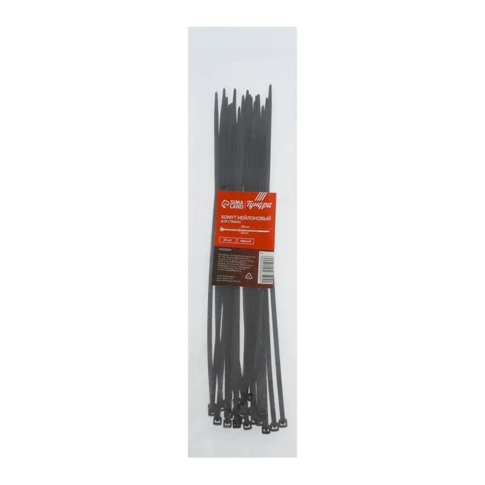 Хомут нейлоновый для стяжки, ТУНДРА, 3.6×250 мм, черный, 25 шт. — Характеристики