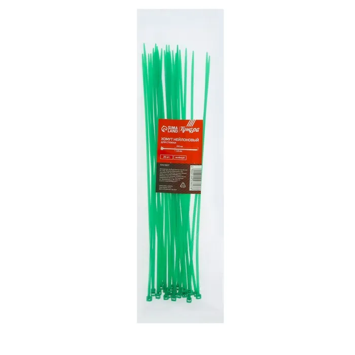 Хомут нейлоновый для стяжки, ТУНДРА, 3.6×250 мм, зеленый, 25 шт. — Характеристики