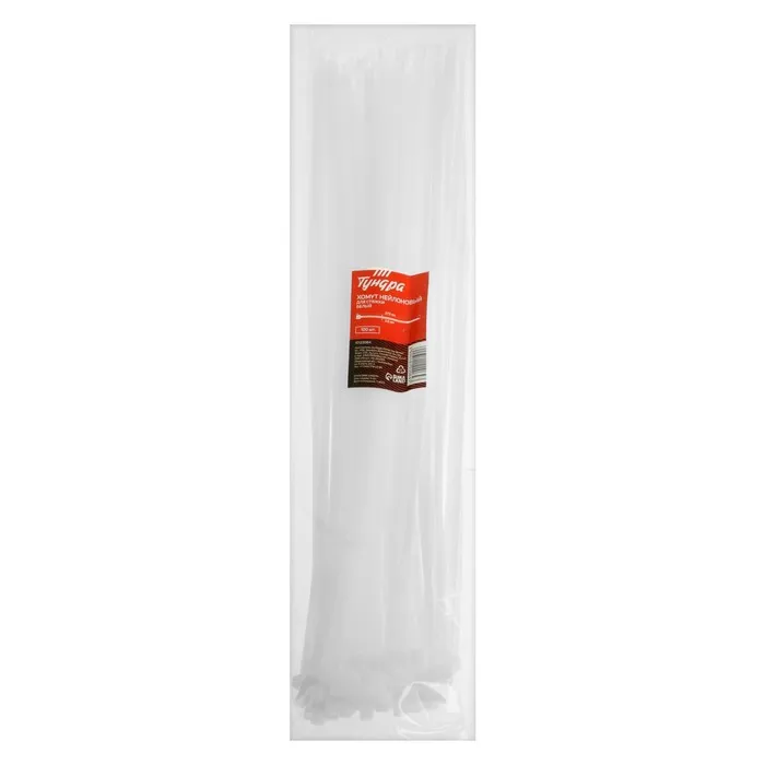 Хомут нейлоновый для стяжки, ТУНДРА, 3.6×450 мм, белый, 100 шт.