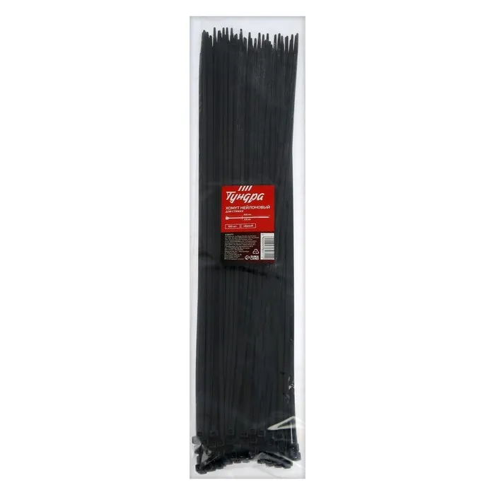 Хомут нейлоновый для стяжки, ТУНДРА, 3.6×400 мм, черный, 100 шт. — Характеристики