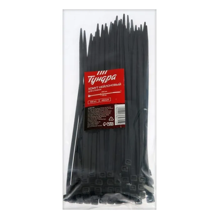 Хомут нейлоновый для стяжки, ТУНДРА, 4,8х200 мм, черный, 100 шт