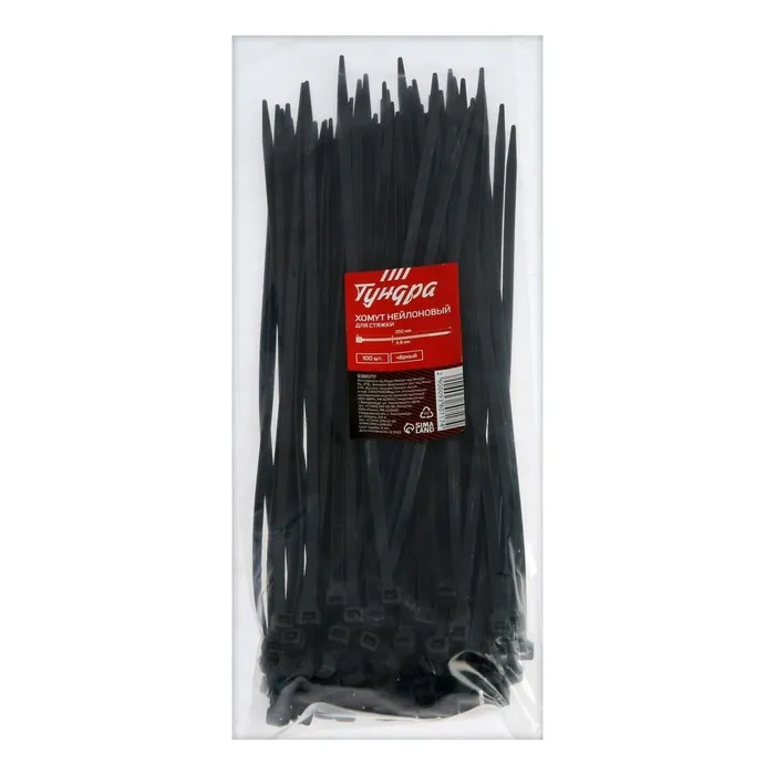 Хомут нейлоновый для стяжки, ТУНДРА, 4.8×250 мм, черный, 100 шт. — Характеристики