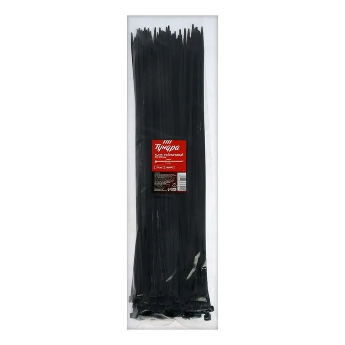 Хомут нейлоновый для стяжки, ТУНДРА, 4.8×400 мм, черный, 100 шт. — Характеристики
