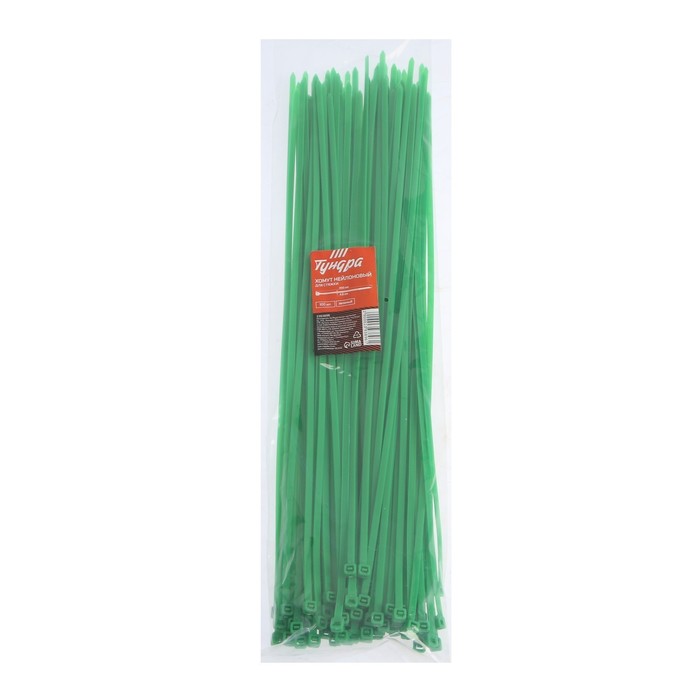 Хомут нейлоновый для стяжки, ТУНДРА, 4.8×400 мм, зеленый, 100 шт. — Характеристики