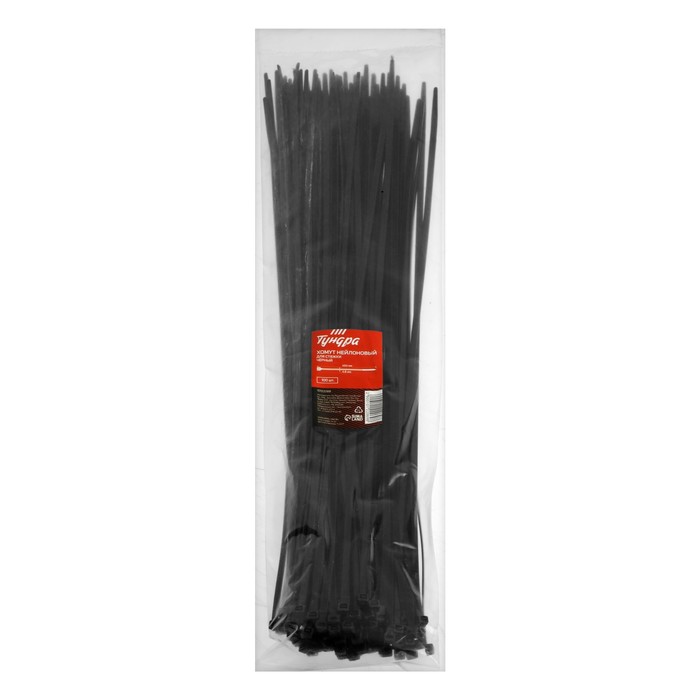 Хомут нейлоновый для стяжки, ТУНДРА, 4.8×450 мм, черный, 100 шт. — Характеристики