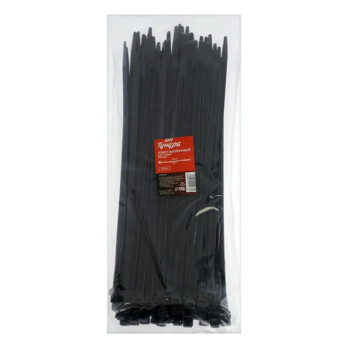 Хомут нейлоновый для стяжки, ТУНДРА, 3.6×300 мм, черный, 100 шт.