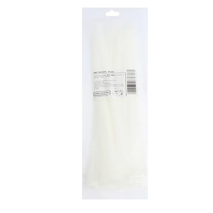 Хомут-стяжки пластиковые, 4.8х300 мм, белые, упаковка 100 шт.