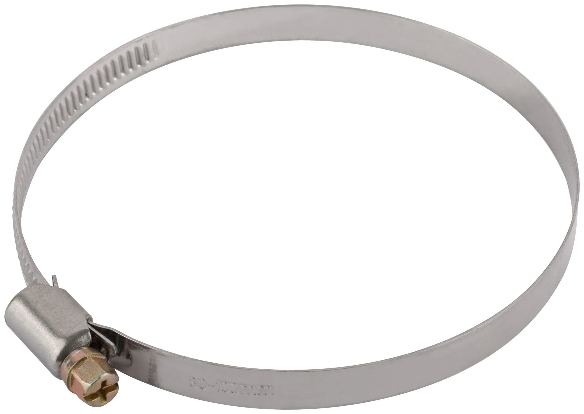 Этот хомут обжимной идеально подходит для крепежа различных труб и шлангов диаметром от 80 до 100 мм. Используйте его на объектах, где требуется прочное и долговечное соединение, например, в системах отопления или водоснабжения.