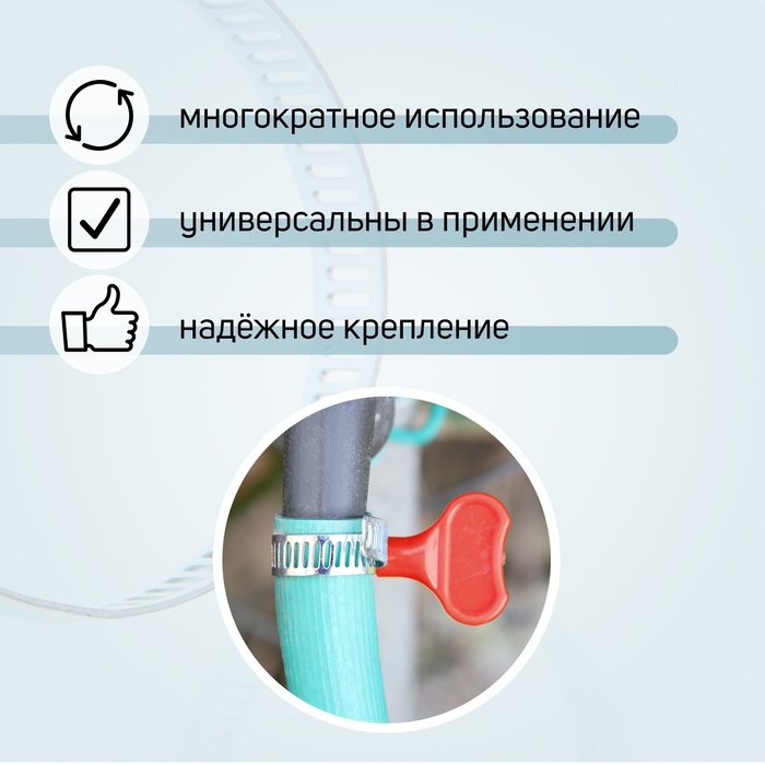 Удобный механизм "барашка" позволяет легко и быстро регулировать и фиксировать хомут, обеспечивая надежное соединение.
