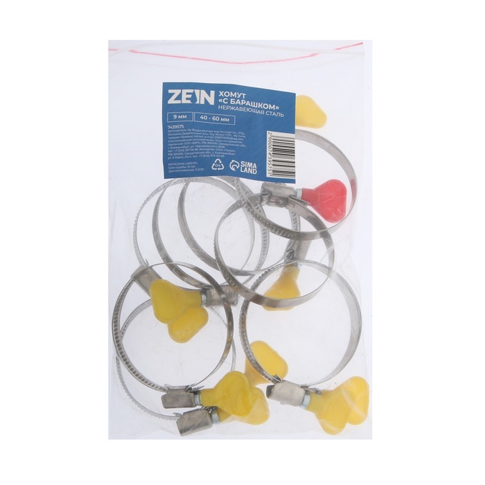 Хомут с "барашком" ZEIN engr, диаметр 40-60 мм, ширина 9 мм, нержавеющая сталь — Характеристики