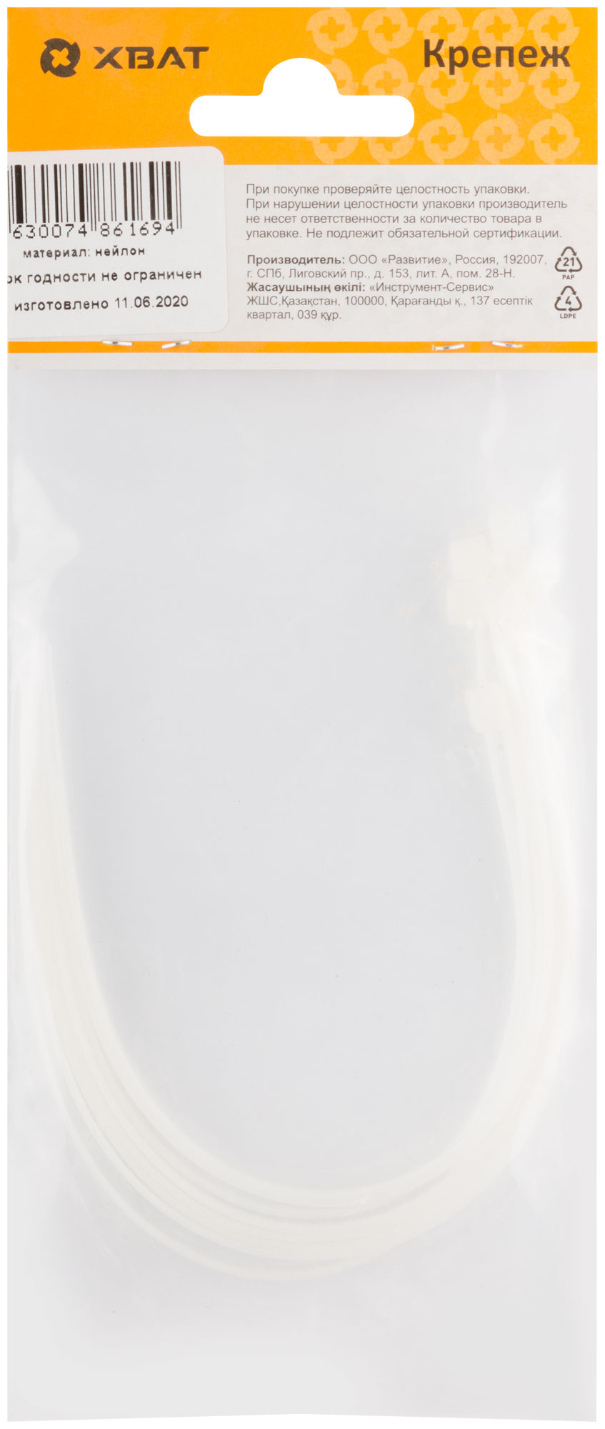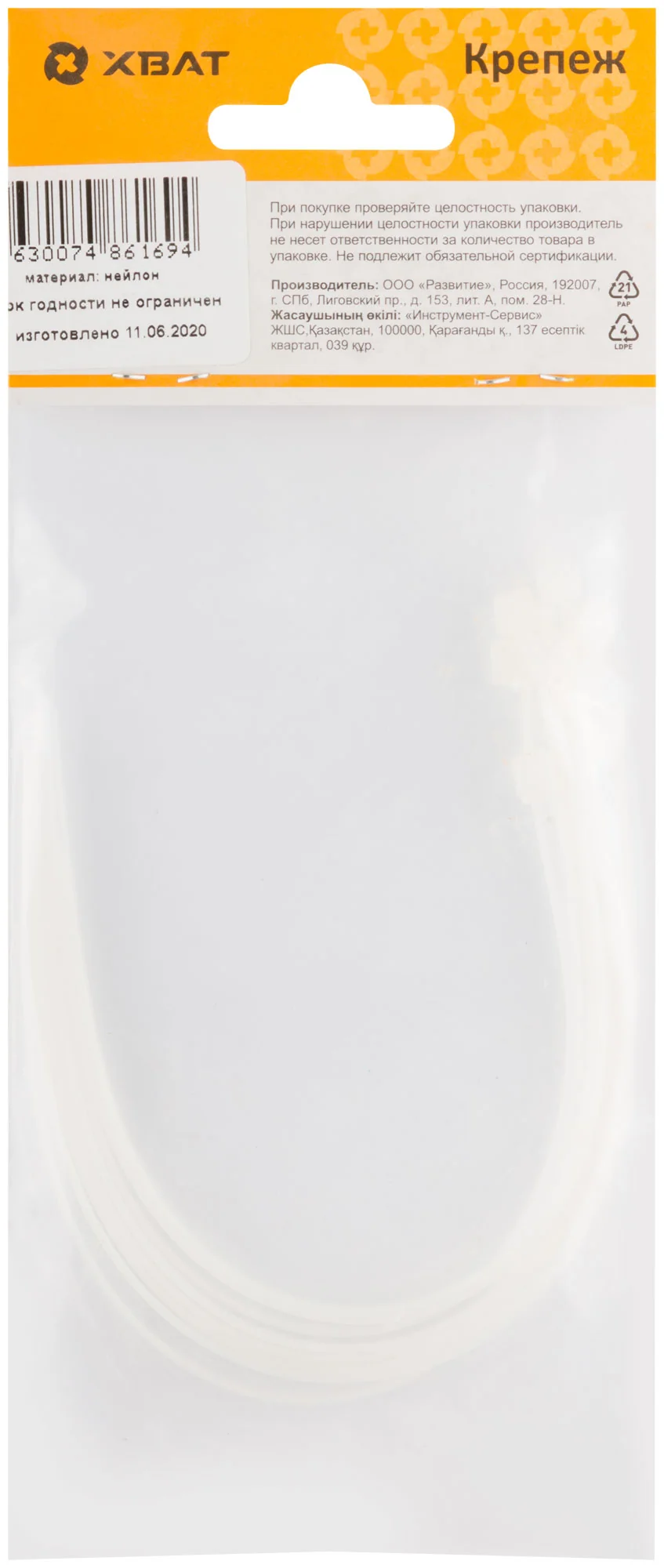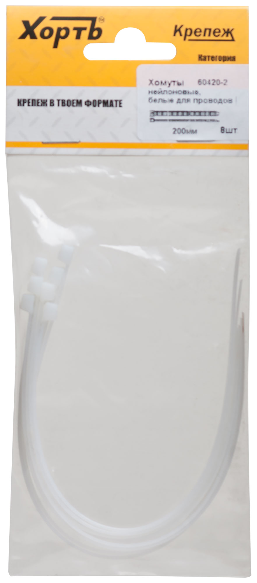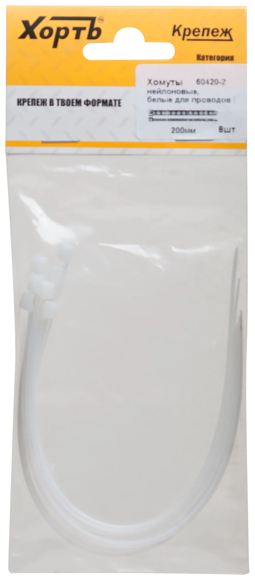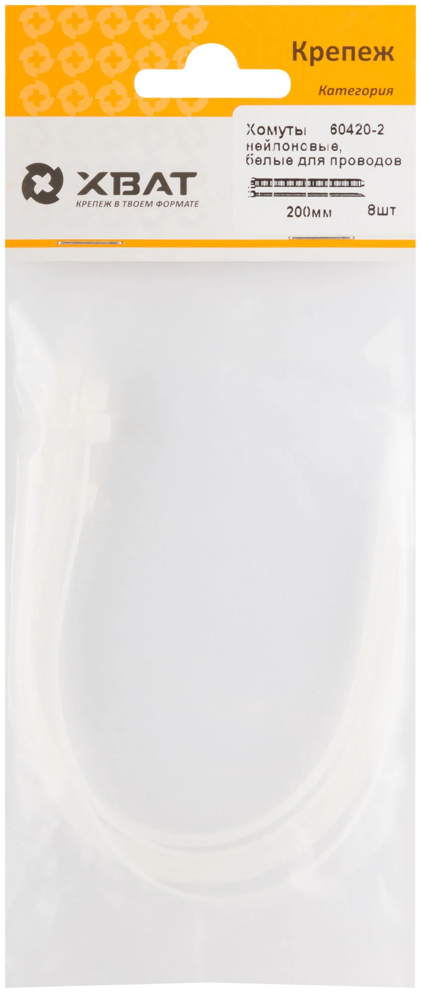 Белые нейлоновые хомуты 200 мм для проводов, фасовка 8 шт