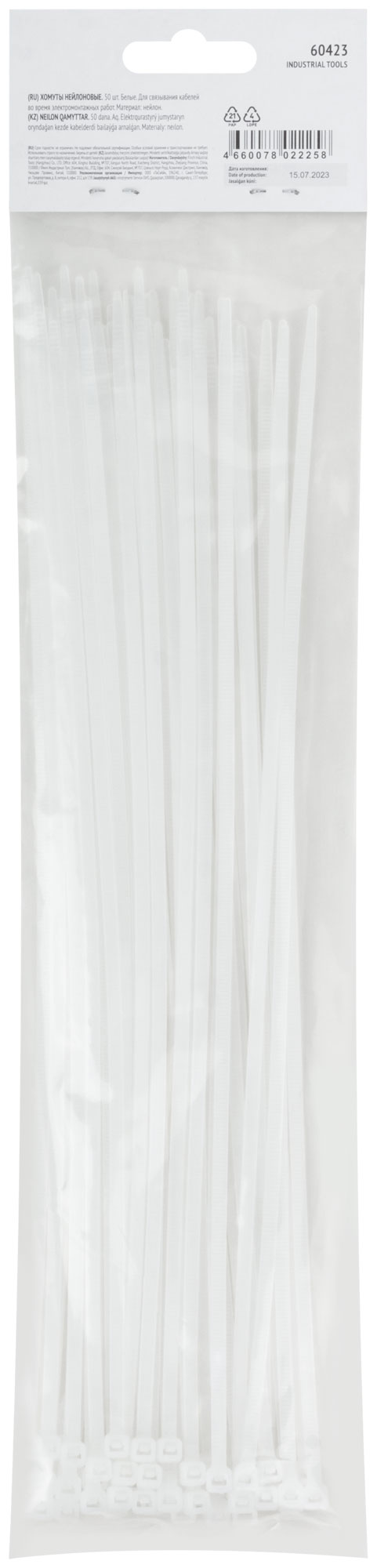 Благодаря упаковке в 50 штук, вы всегда будете иметь под рукой необходимое количество хомутов для выполнения различных задач. Белый цвет хомутов позволяет им быть незаметными на светлых поверхностях.