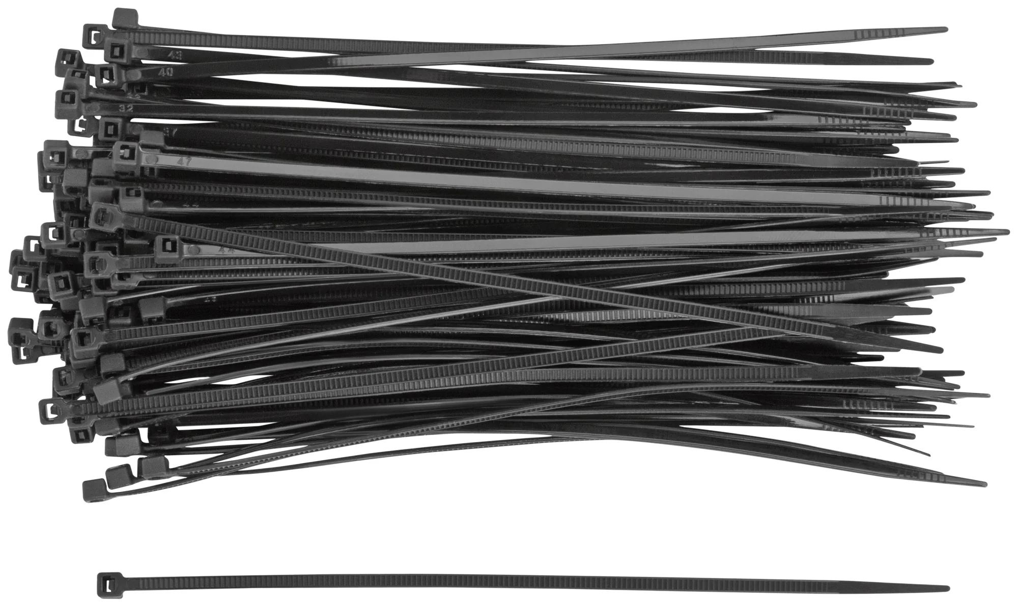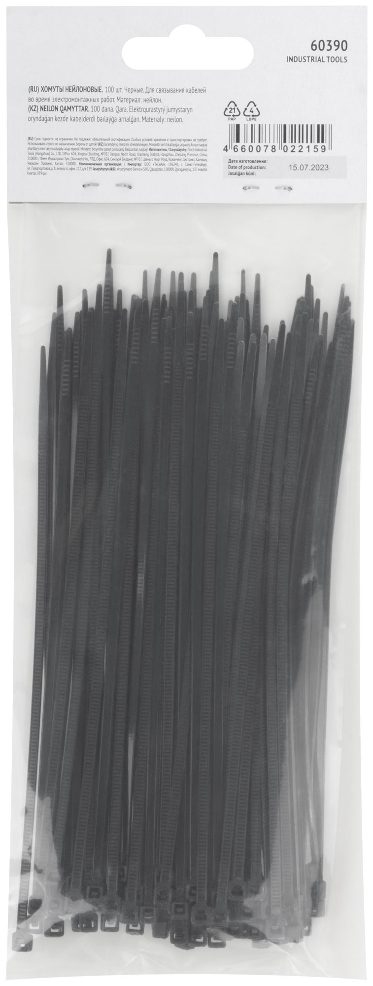 Изготовлены из прочного нейлона, черного цвета, обеспечивают долговечность и устойчивость к внешним воздействиям. Упакованы в удобный формат по 100 штук, что делает их идеальными для массового использования.