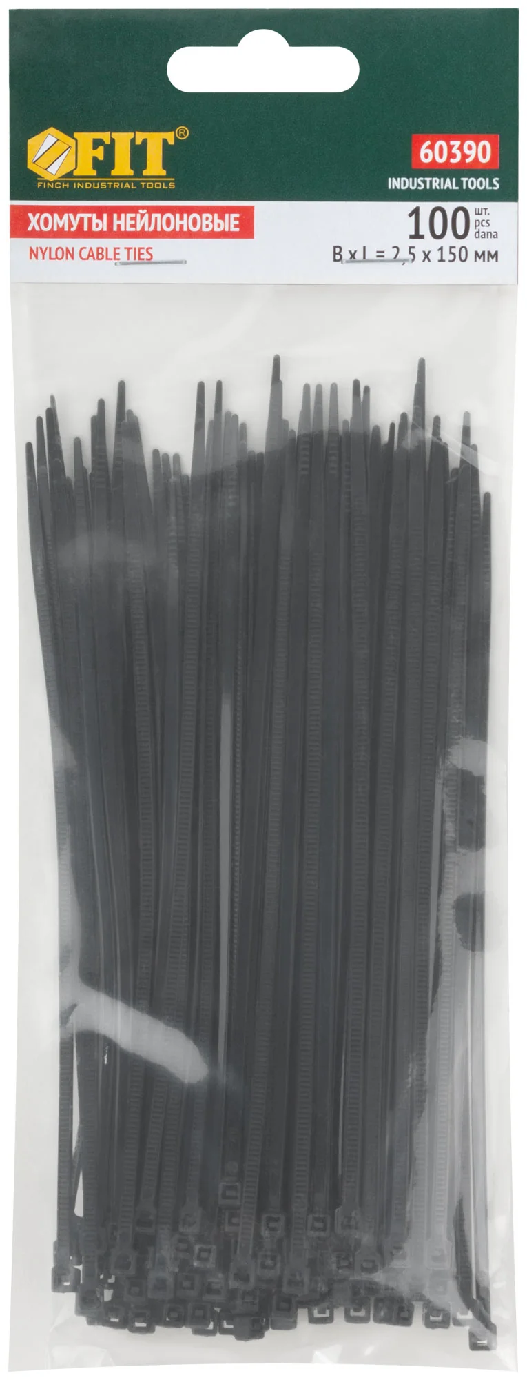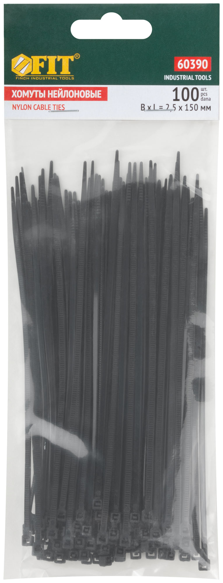Выберите черные нейлоновые хомуты FIT 60390 для надежной и долговечной фиксации кабелей и проводов.