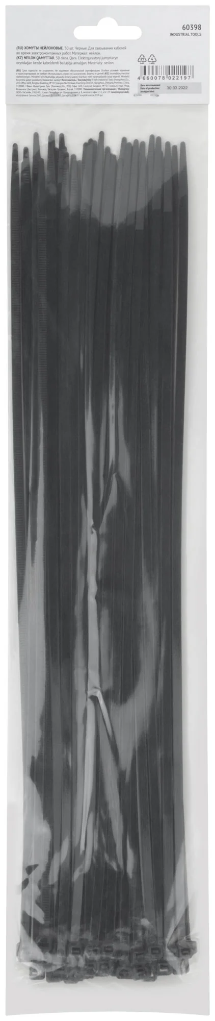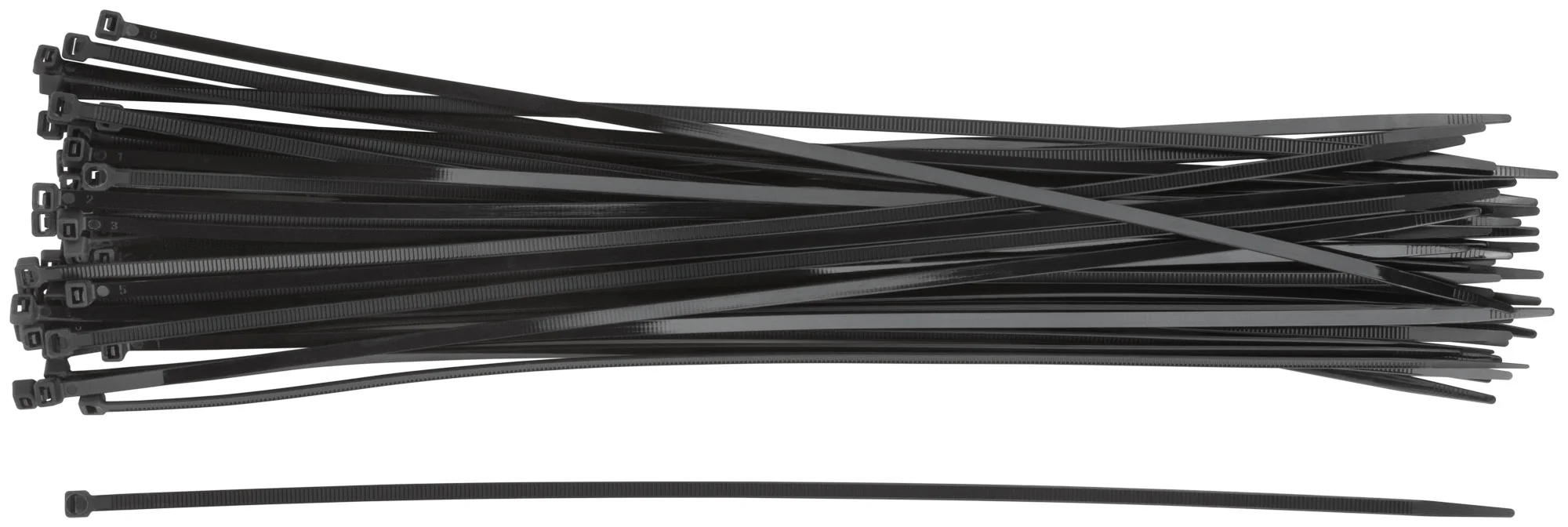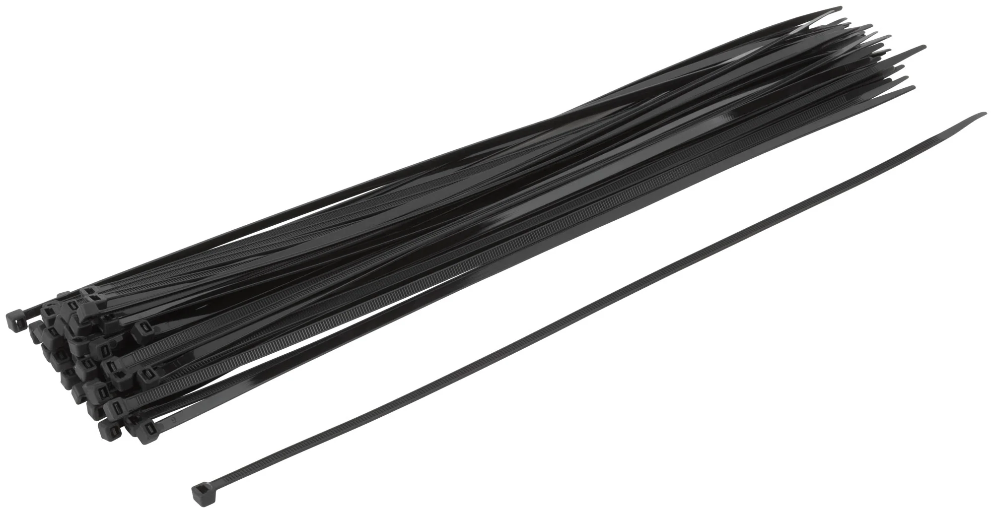 Хомуты выполнены из прочного нейлона, который отличается устойчивостью к износу и внешним воздействиям. Черный цвет делает их менее заметными на фоне темных поверхностей и проводов, что обеспечивает аккуратный внешний вид.
