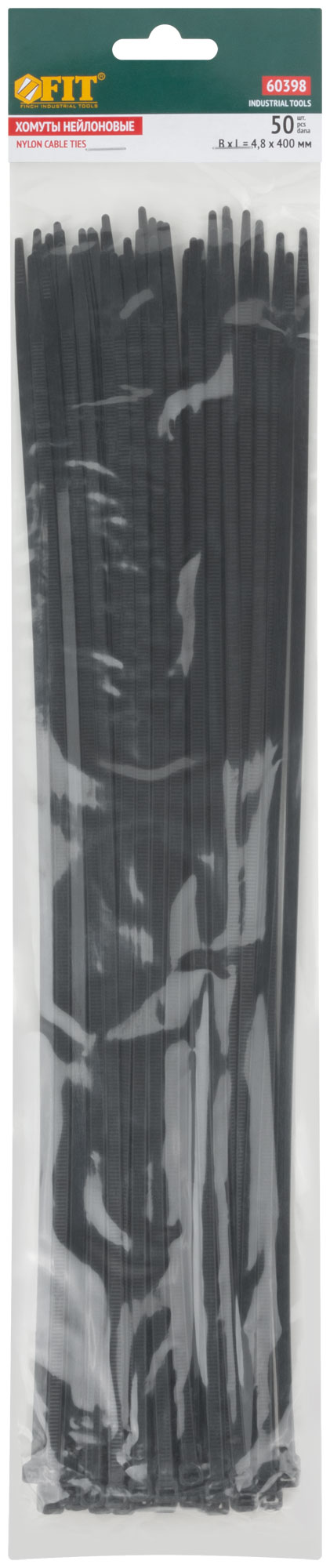 Нейлоновые хомуты FIT имеют размеры 400x4,8 мм, что позволяет использовать их для различных задач, от фиксации кабелей до организации проводки в шкафах и на стенах.