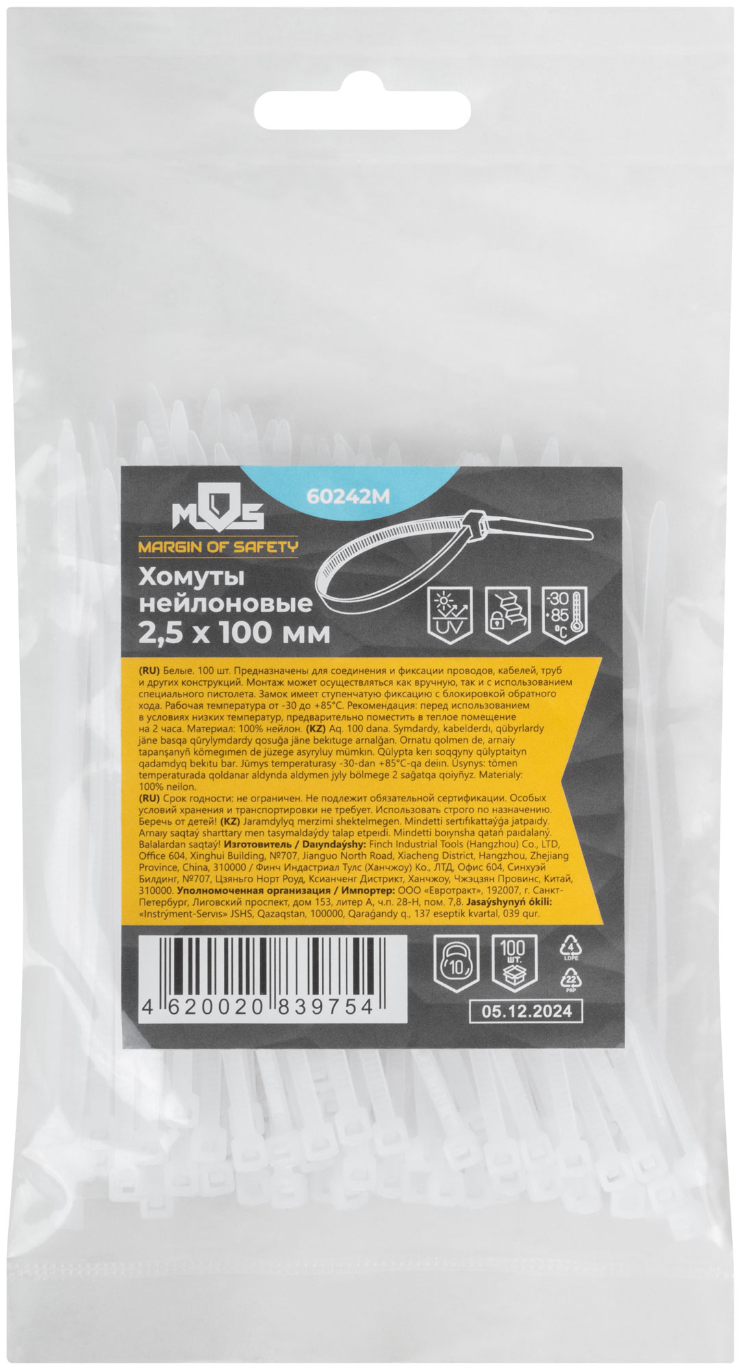 - 100 хомутов в полиэтиленовом пакете с подвесом.