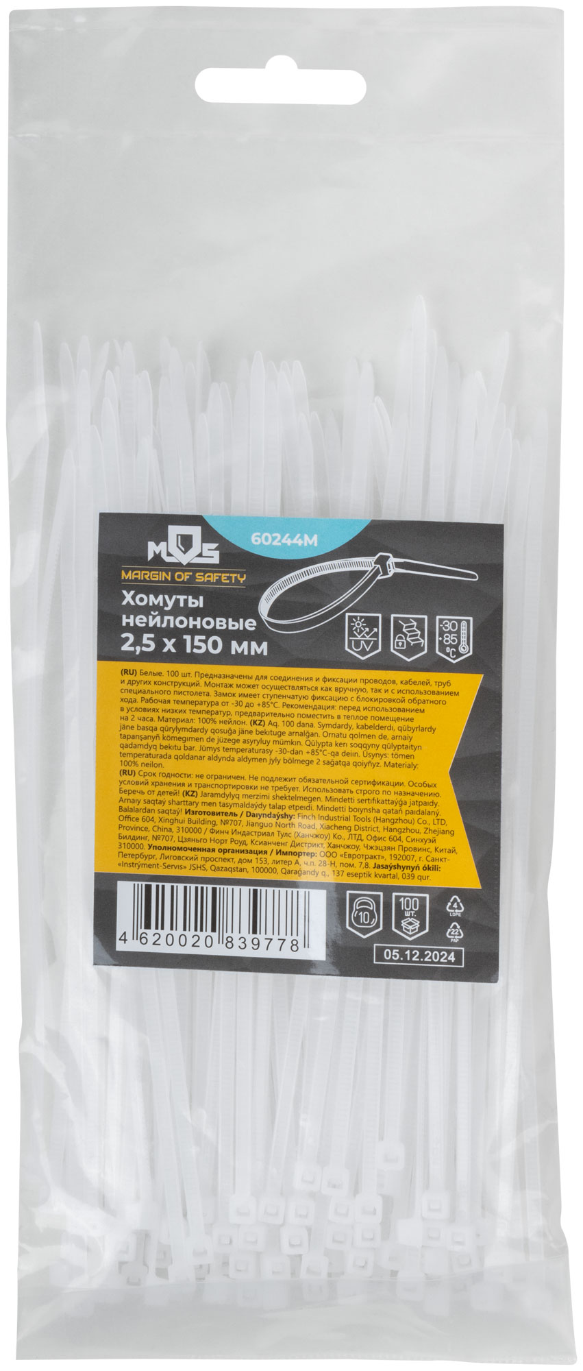 Эти белые нейлоновые хомуты от MOS станут незаменимым помощником для электриков и монтажников при работе с проводами и кабелями. Они позволяют организовать проводку, предотвратить её спутывание и обеспечить надёжную фиксацию в любом проекте.