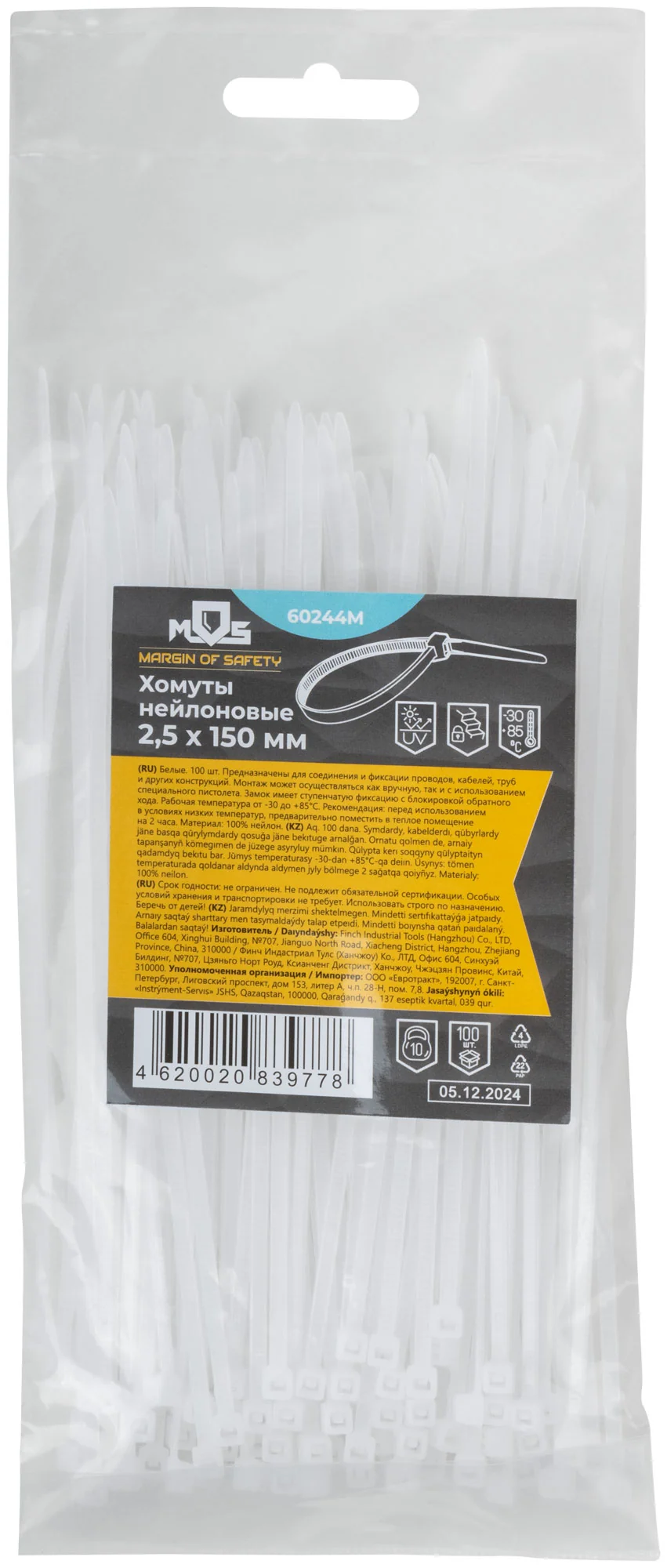 Хомуты нейлоновые 2,5х150 мм для надёжной фиксации