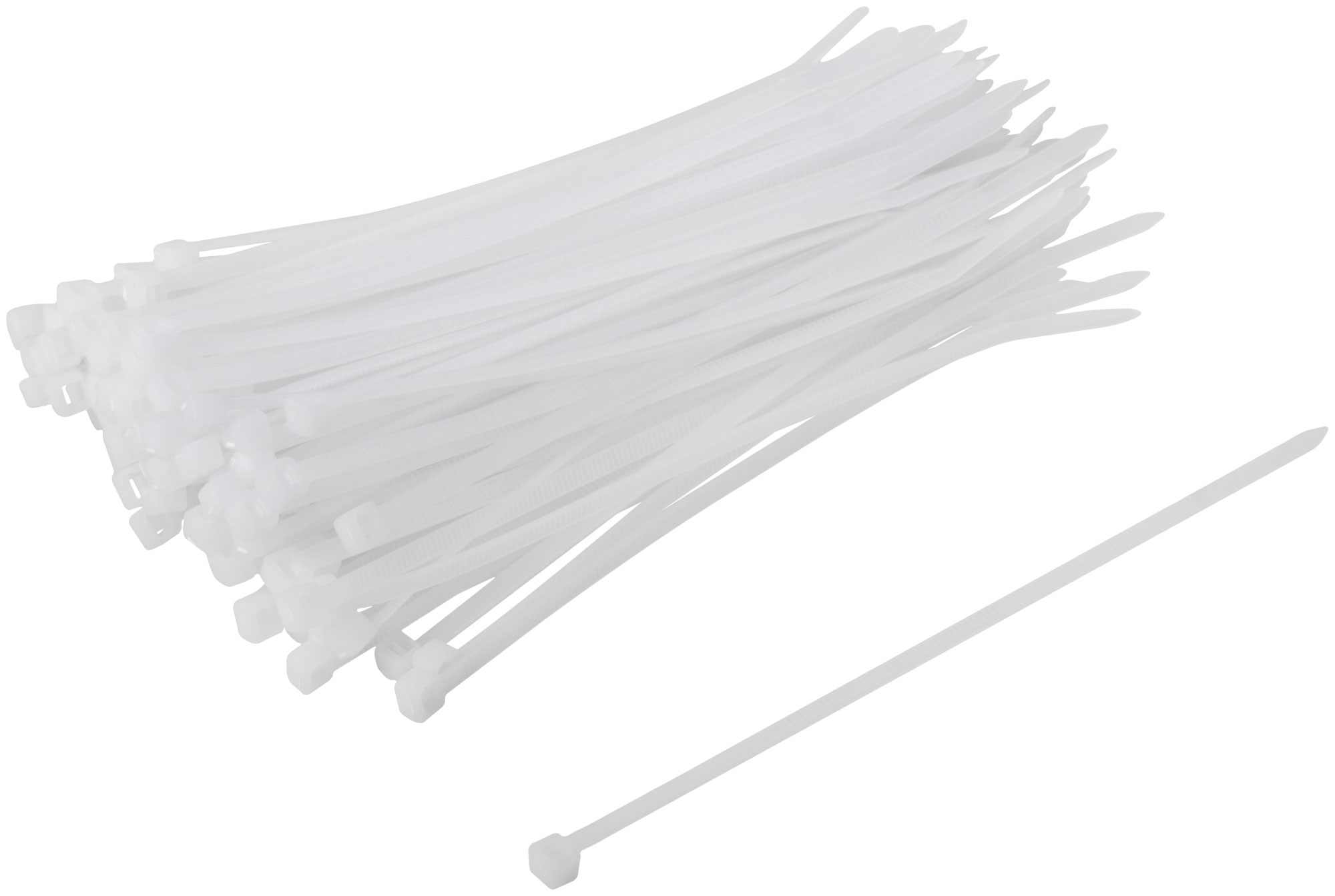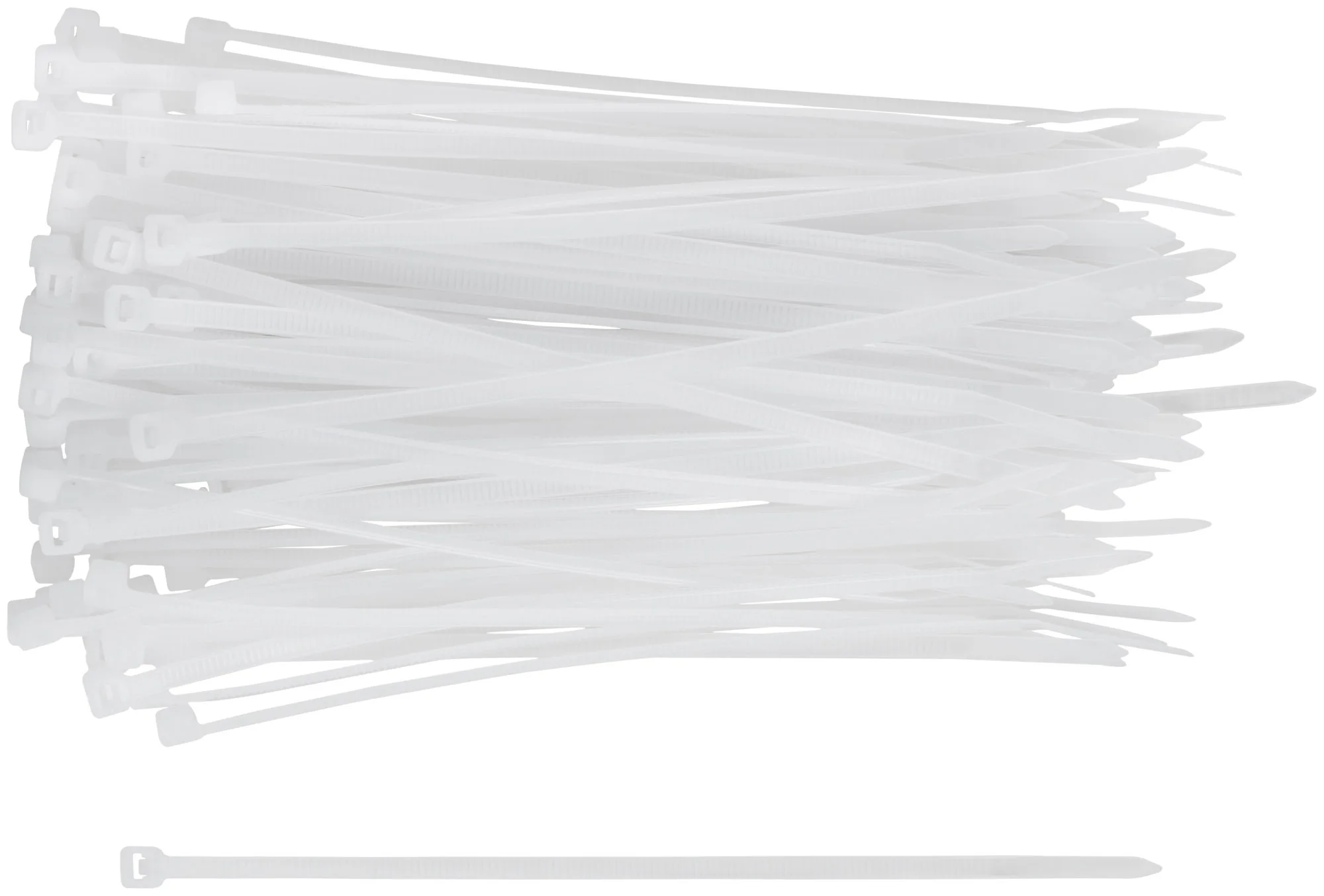 Изготовлены из прочного нейлона, эти хомуты обеспечивают долговечность и устойчивость к внешним воздействиям. Упаковка содержит 100 штук, что делает их идеальным выбором для профессионального использования.