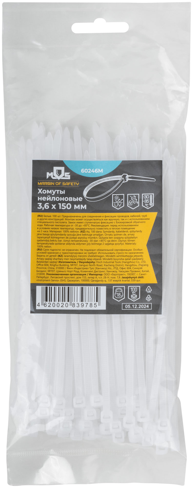 Выберите хомуты MOS 3,6х150 мм, чтобы обеспечить надежное крепление и аккуратный вид ваших проектов.