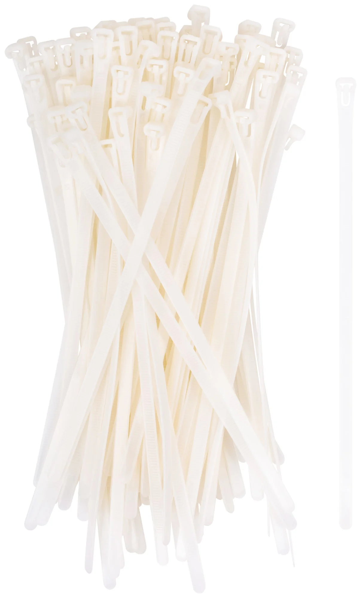 Хомуты изготовлены из прочного и гибкого нейлона, что позволяет многократно использовать их без потери качества. Белый цвет обеспечивает эстетичный вид, а упаковка из 100 штук гарантирует, что у вас всегда будет под рукой необходимое количество.