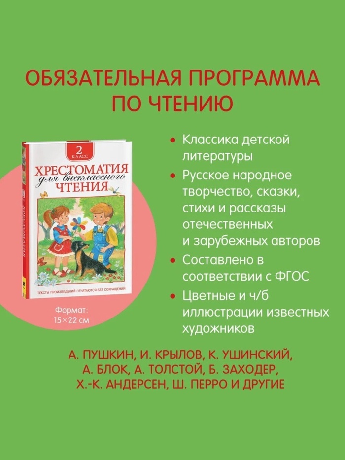Хрестоматия для внеклассного чтения 2 класс — это сборник, который открывает дверь в мир литературы для детей 5 лет и старше. В книге собраны произведения устного народного творчества, стихи классиков русской поэзии, рассказы и сказки отечественных и зарубежных авторов. Это идеальный выбор для внеклассного чтения, соответствующий рекомендациям учебной программы.