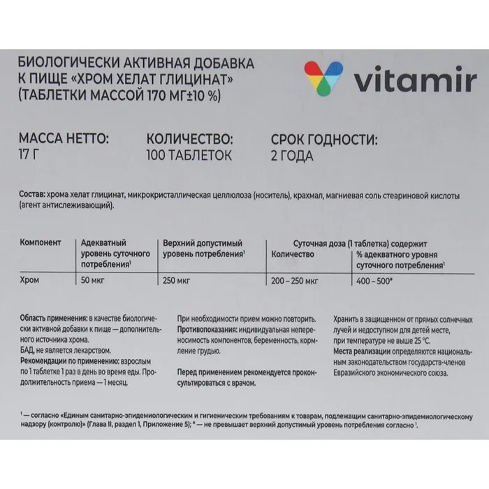 ХРОМ ХЕЛАТ ГЛИЦИНАТ - Биологически активная добавка (БАД) к пище - , дополни- тельный источник хрома.